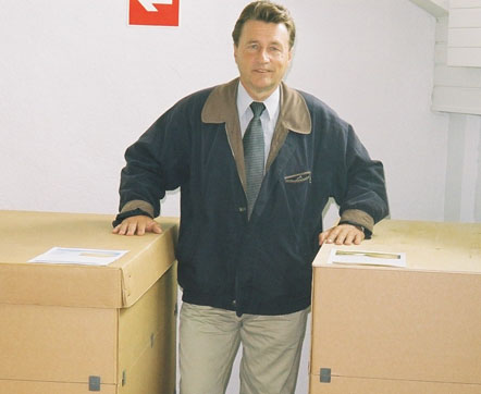 Erik Boucht, diplomi-insinööri, tekninen kemia ja hänen mallisuojattu ja patentoitu pakkausratkaisunsa.